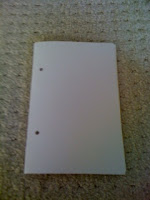 Next, fold three sheets of paper in half. Punch 2” from each end as shown. Push one end of a rubber band through the top hole and