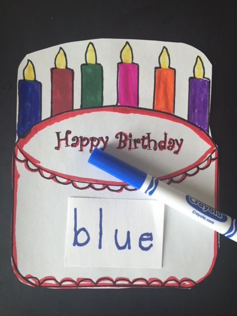 It’s a blue one for you. (Hold up a blue crayon or marker.)
