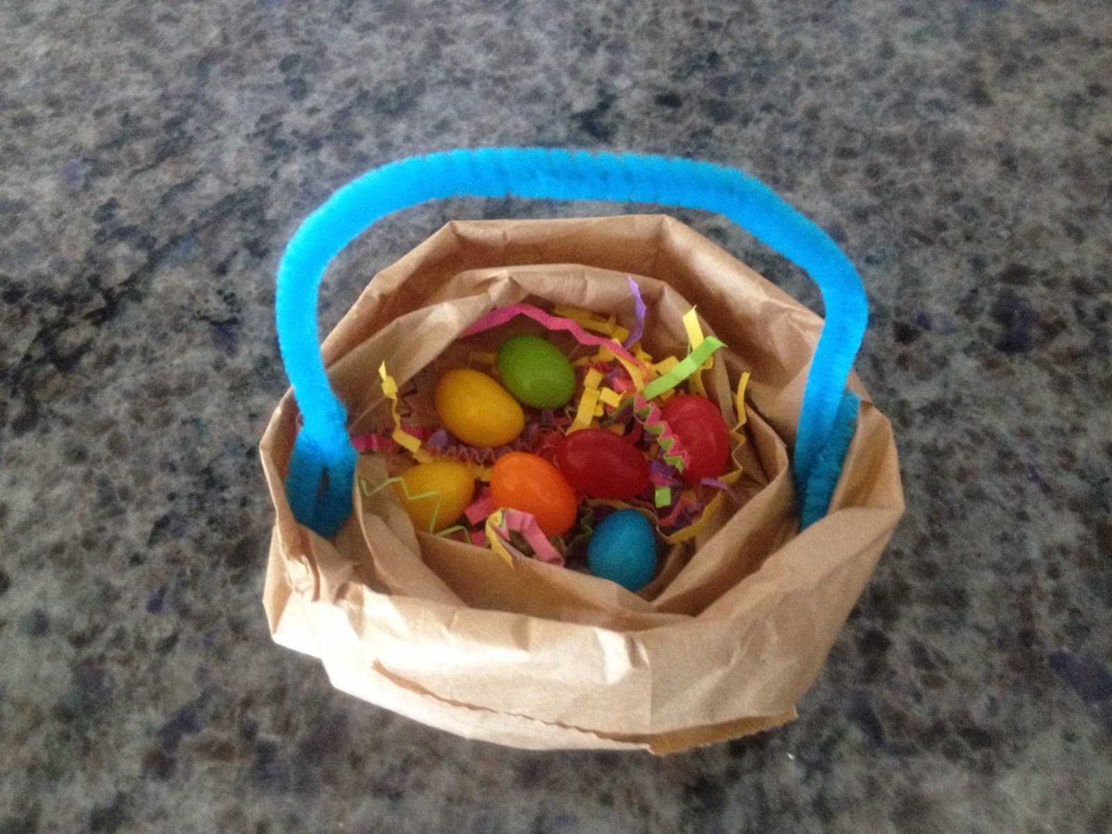 Trace around children's hands and cut them out. Cut off the middle finger and bring the pinky finger and thumb finger down to make arms as shown. Decorate and there's your bunny!